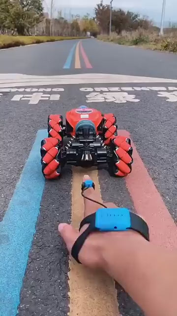 Meet the SpinRoo RC Car 360, a smart stunt car that flips, drifts and spins in every direction. With three awesome control modes — remote control, gravity-sensing watch, and hand gesture mode — kids can drive it any way they like!